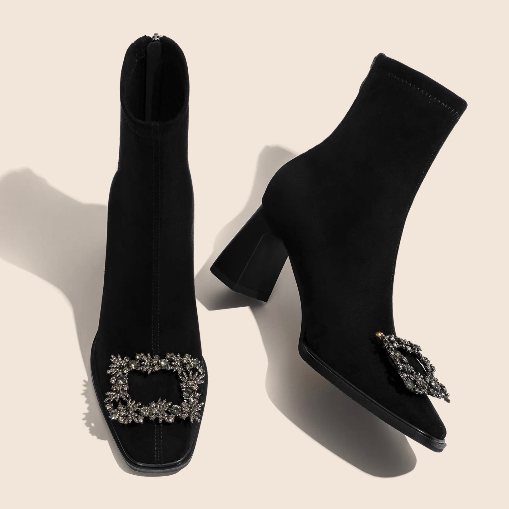【7cmヒール】ビジュー付きショートブーツ【071003】