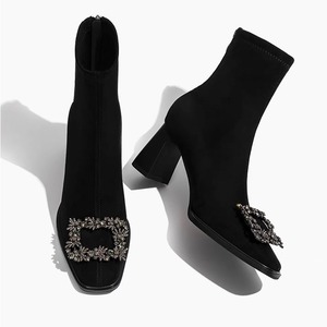 【7cmヒール】ビジュー付きショートブーツ【071007】