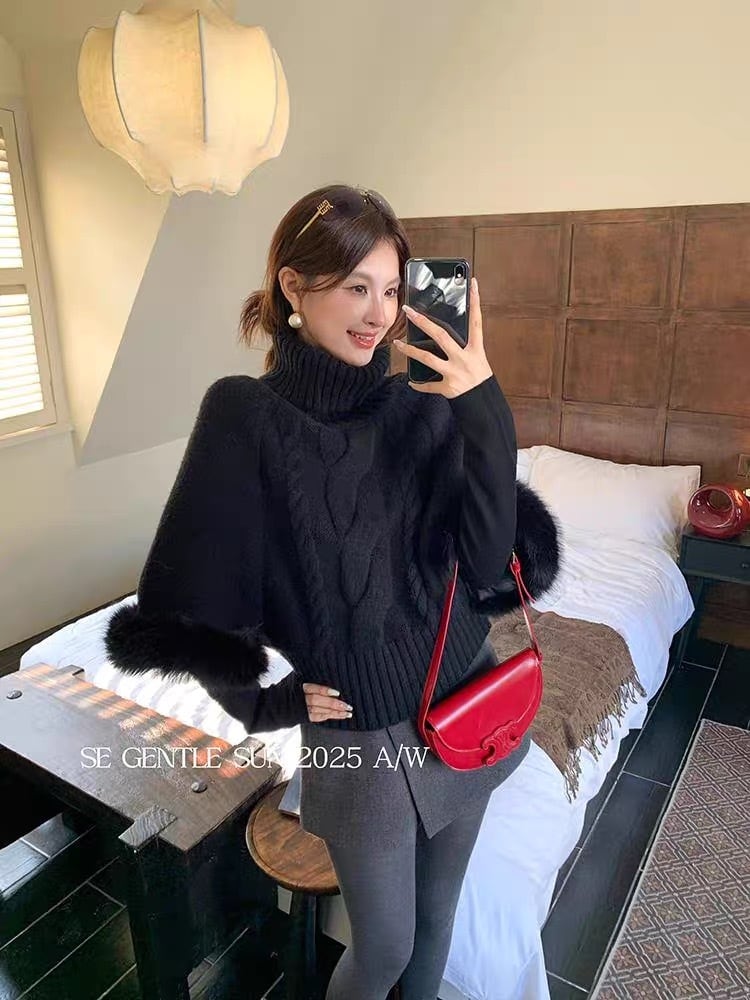 全5色タートルネックポンチョニット【071201】