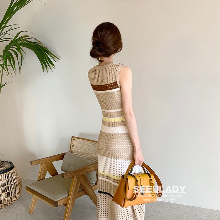 マルチボーダーマキシニットワンピース