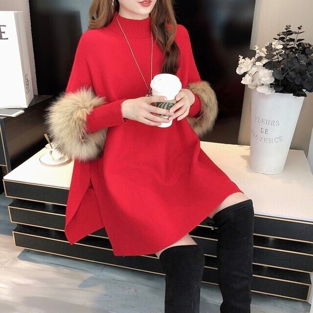 【hinapin着用】全5色エコファーポンチョニットワンピース