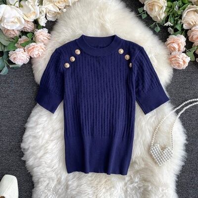 全5色プルオーバーリブニット半袖トップス