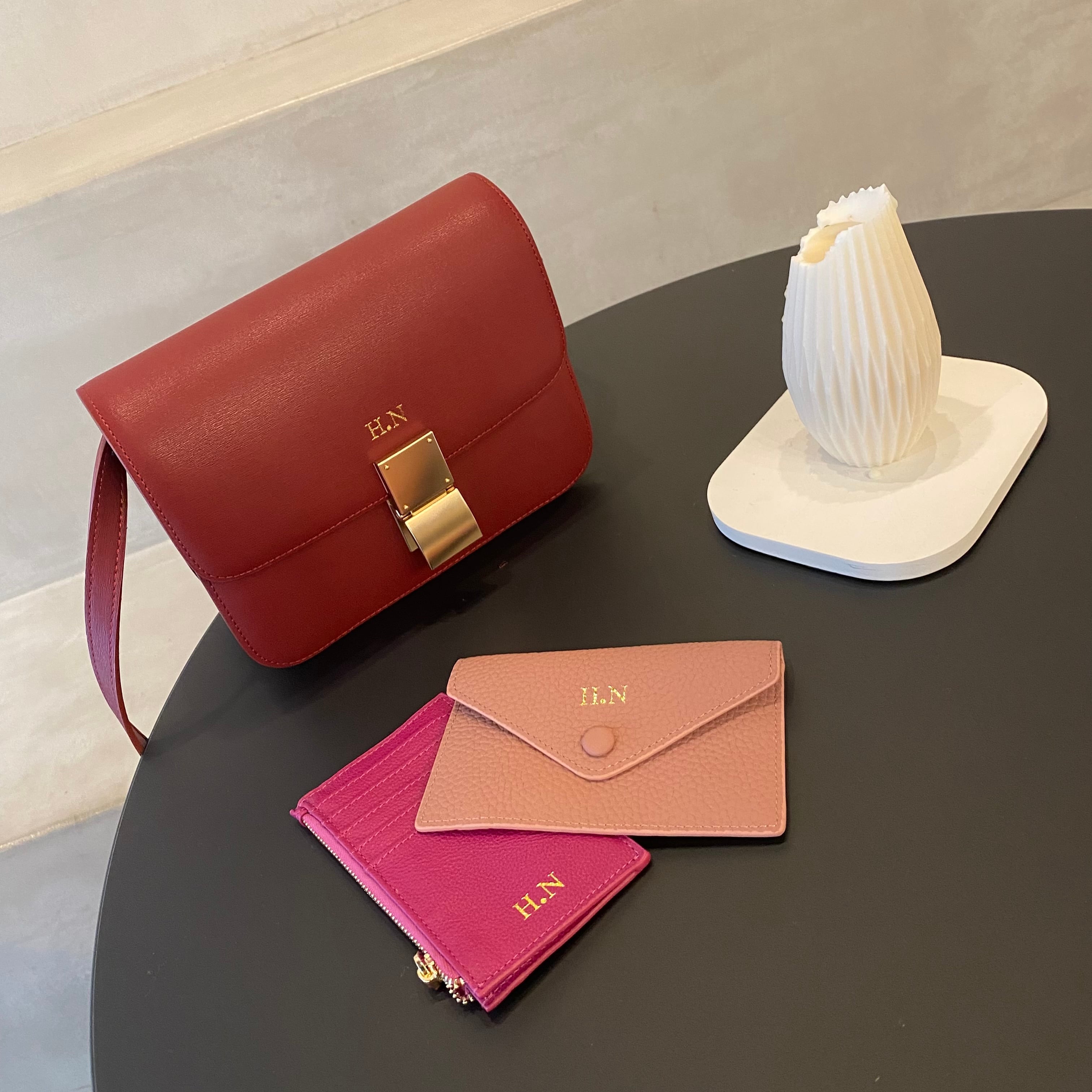 【名前入れ可】全8色本革刻印ポケット付きフラグメントケース