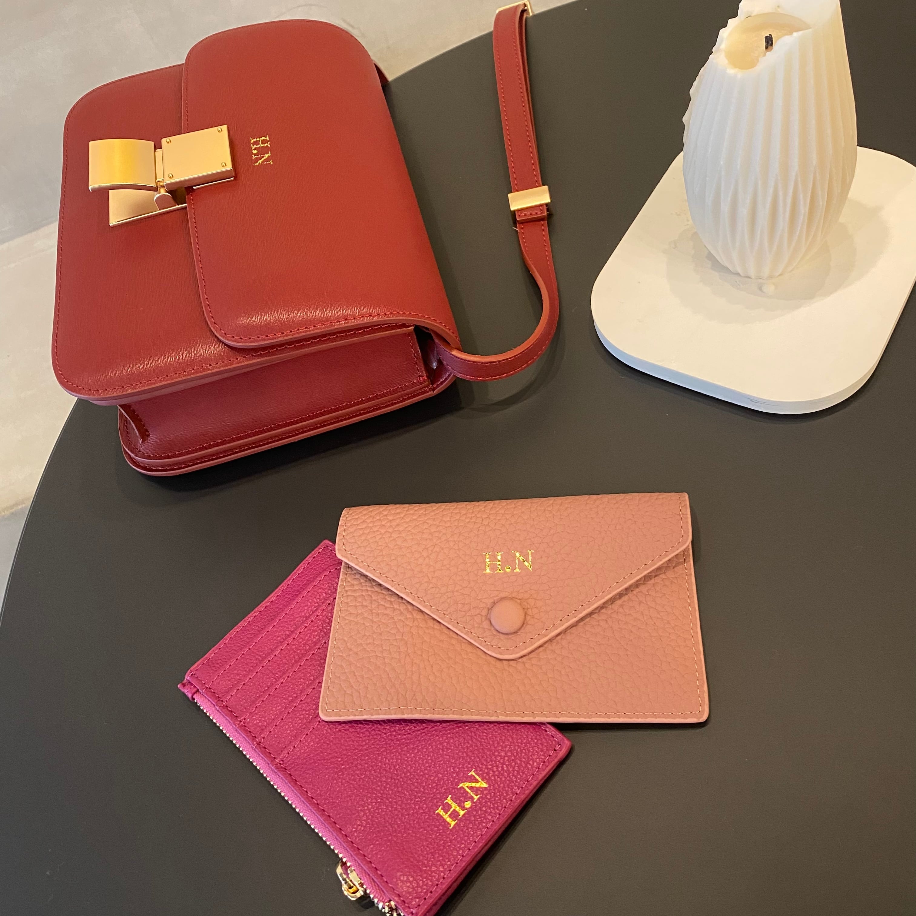 ゴールドの箔押しでお名前やイニシャルを刻印でき