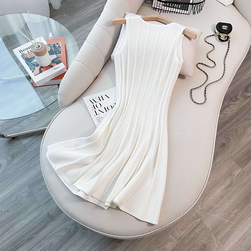 ホワイトラインフレアニットワンピース【050814】